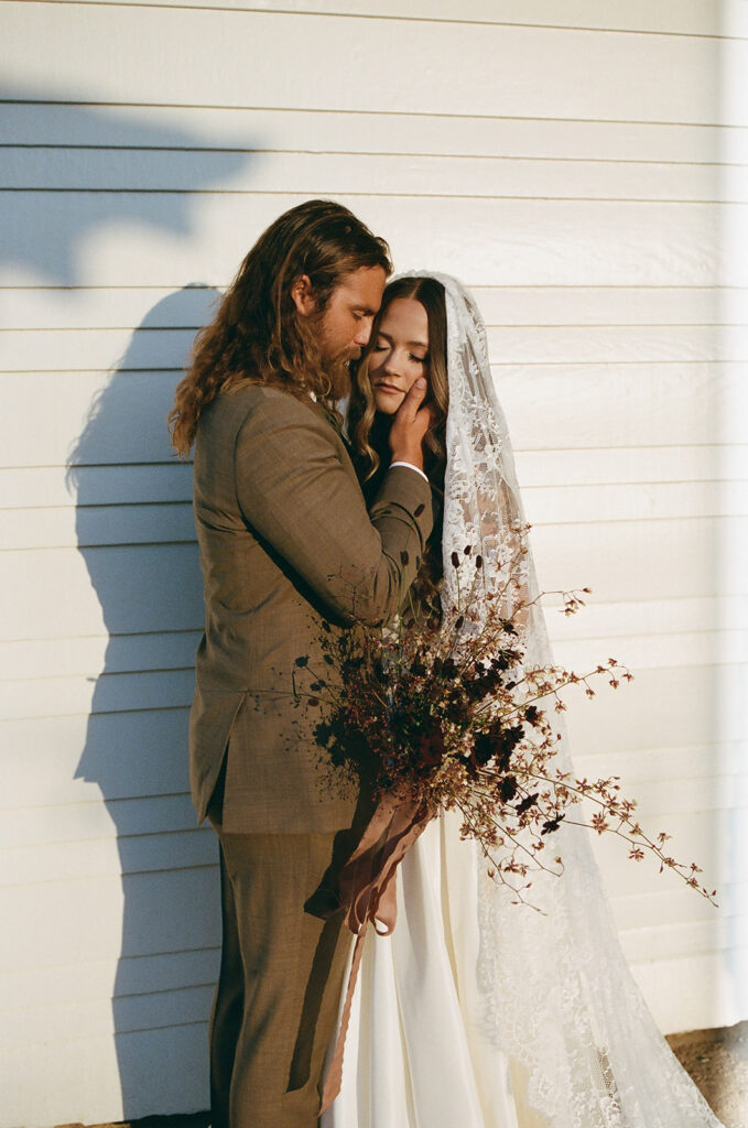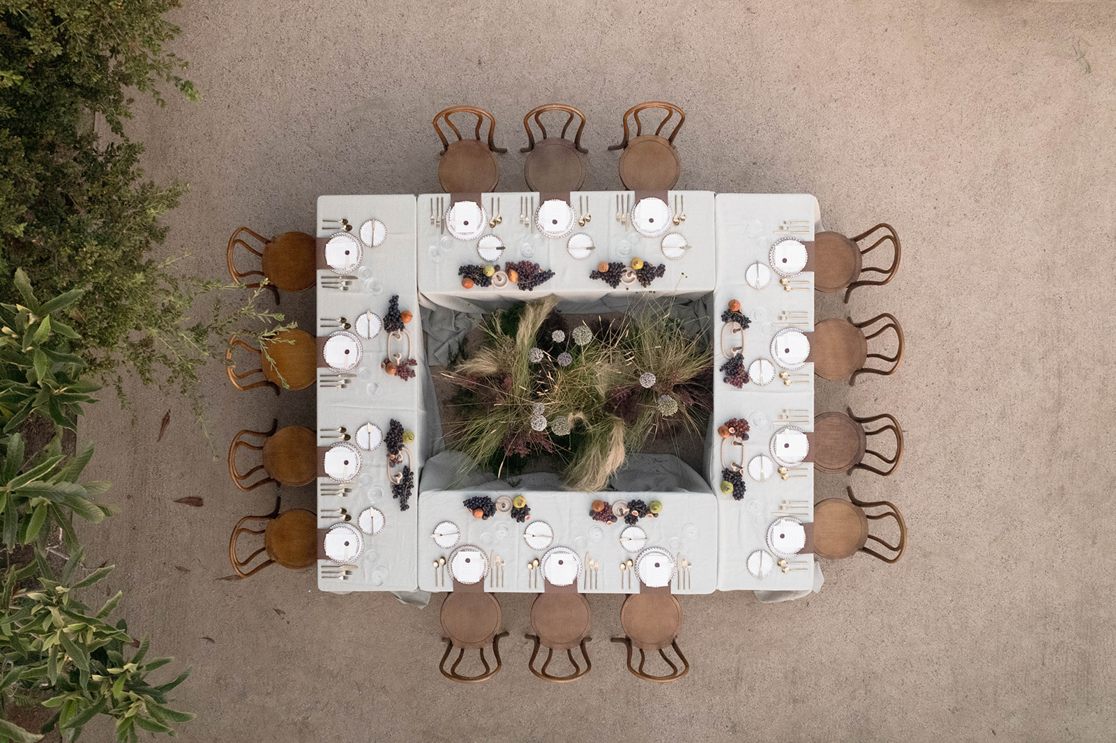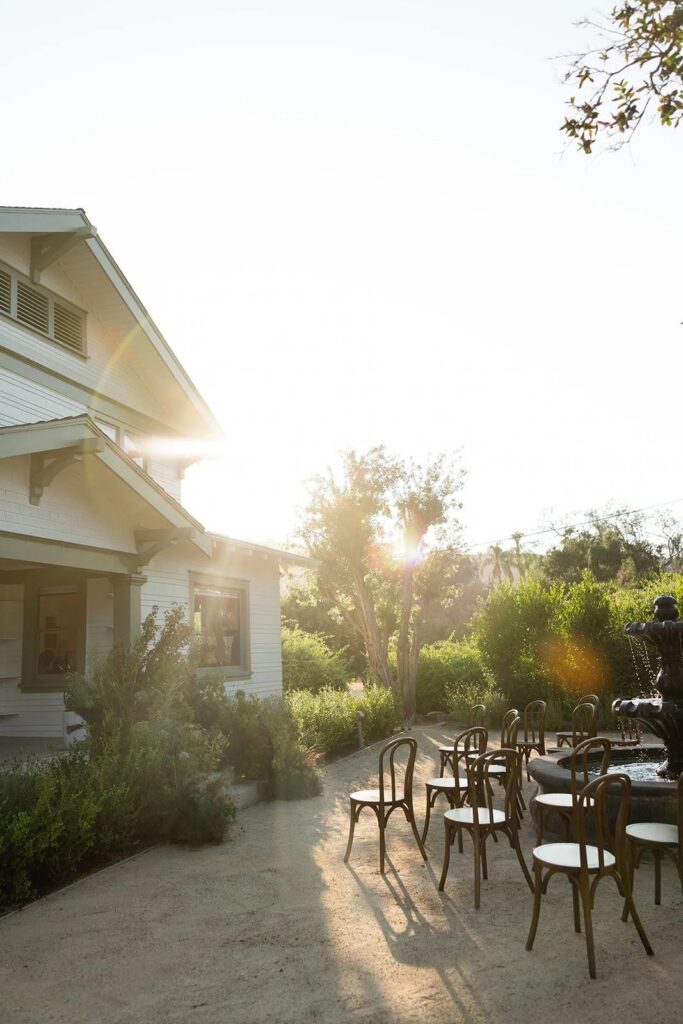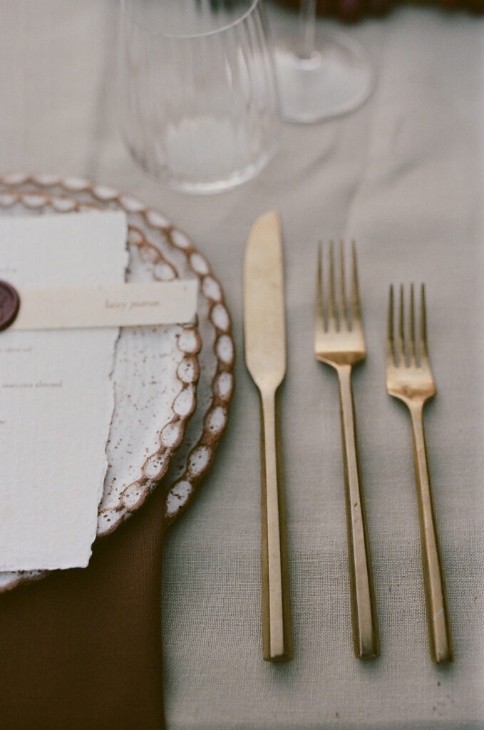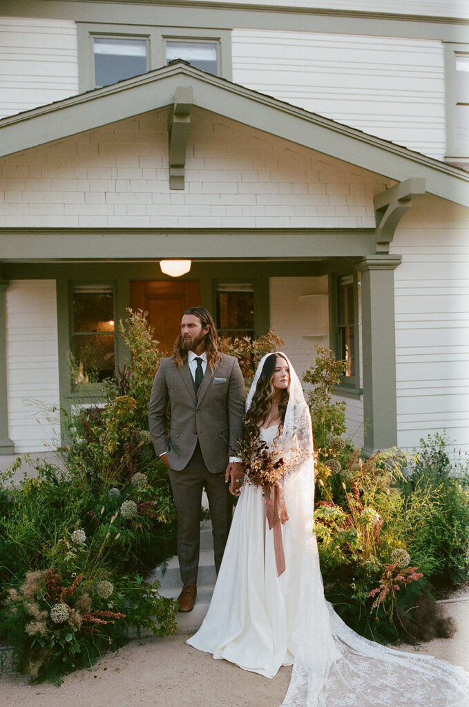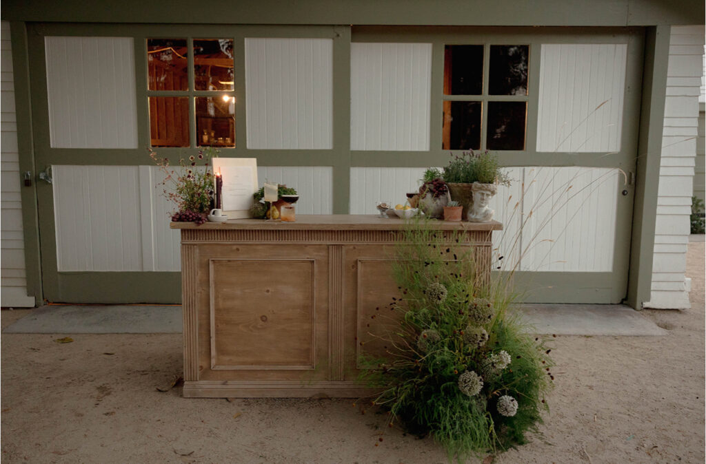 San Juan Capistrano is known for it’s raw, rugged, and historic Ranch culture. This editorial, styled by Wilde and Sage Co, emphasized the natural terrain while bringing in a moody yet elegant autumnal touch. We designed a cozy intimate table arrangement where guests all faced each other, completed with wispy grasses and textural blooms in a unique and grounded floral tablescape. Maple branches arched around the couple for their staircase set ceremony, with the bride carrying a moody bouquet of orchids and chocolate cosmos. I loved working with talented local vendors to bring this shoot to life. We are so honored to have seen this shoot featured in the October 2024 print of British Vogue.